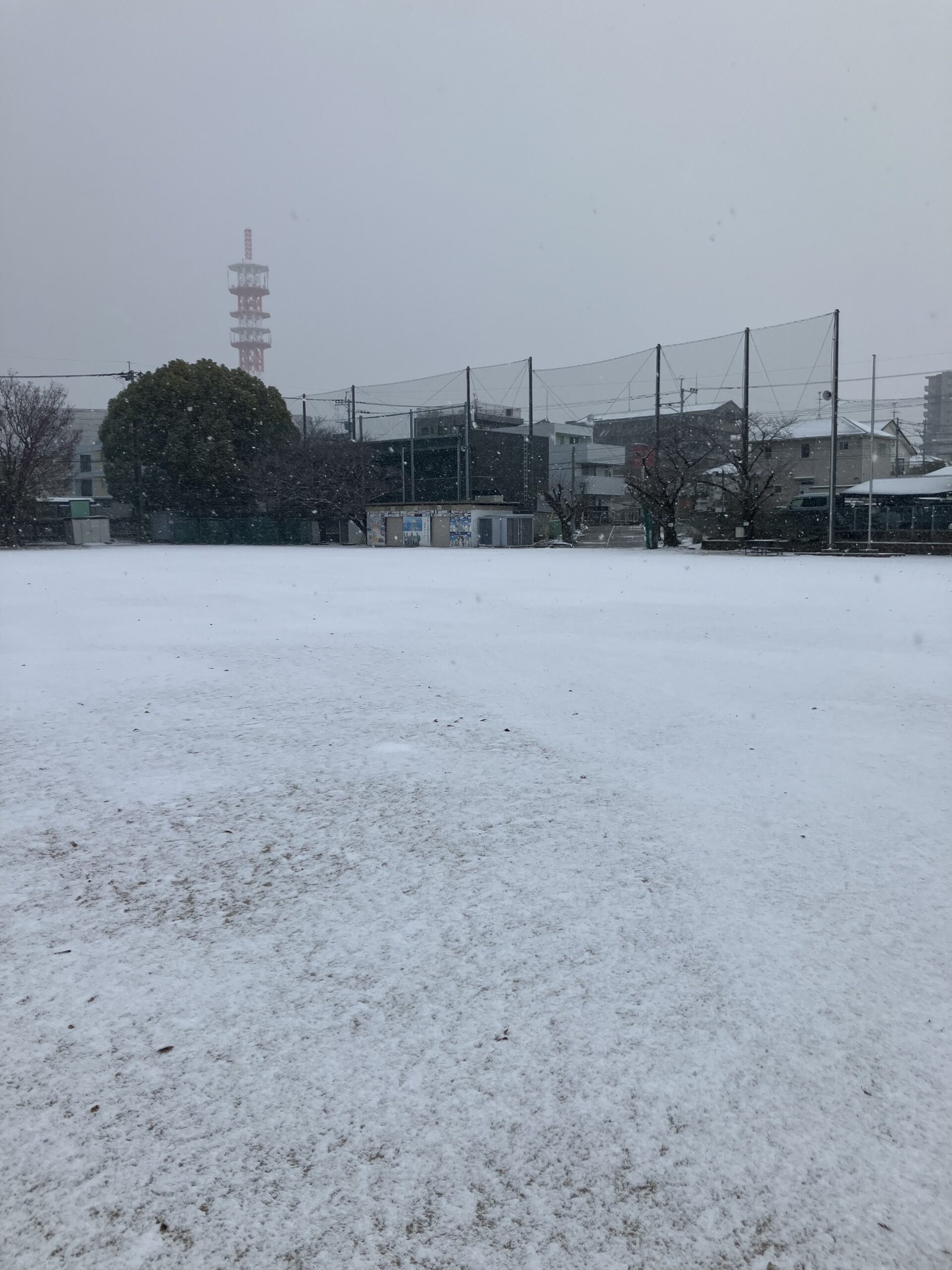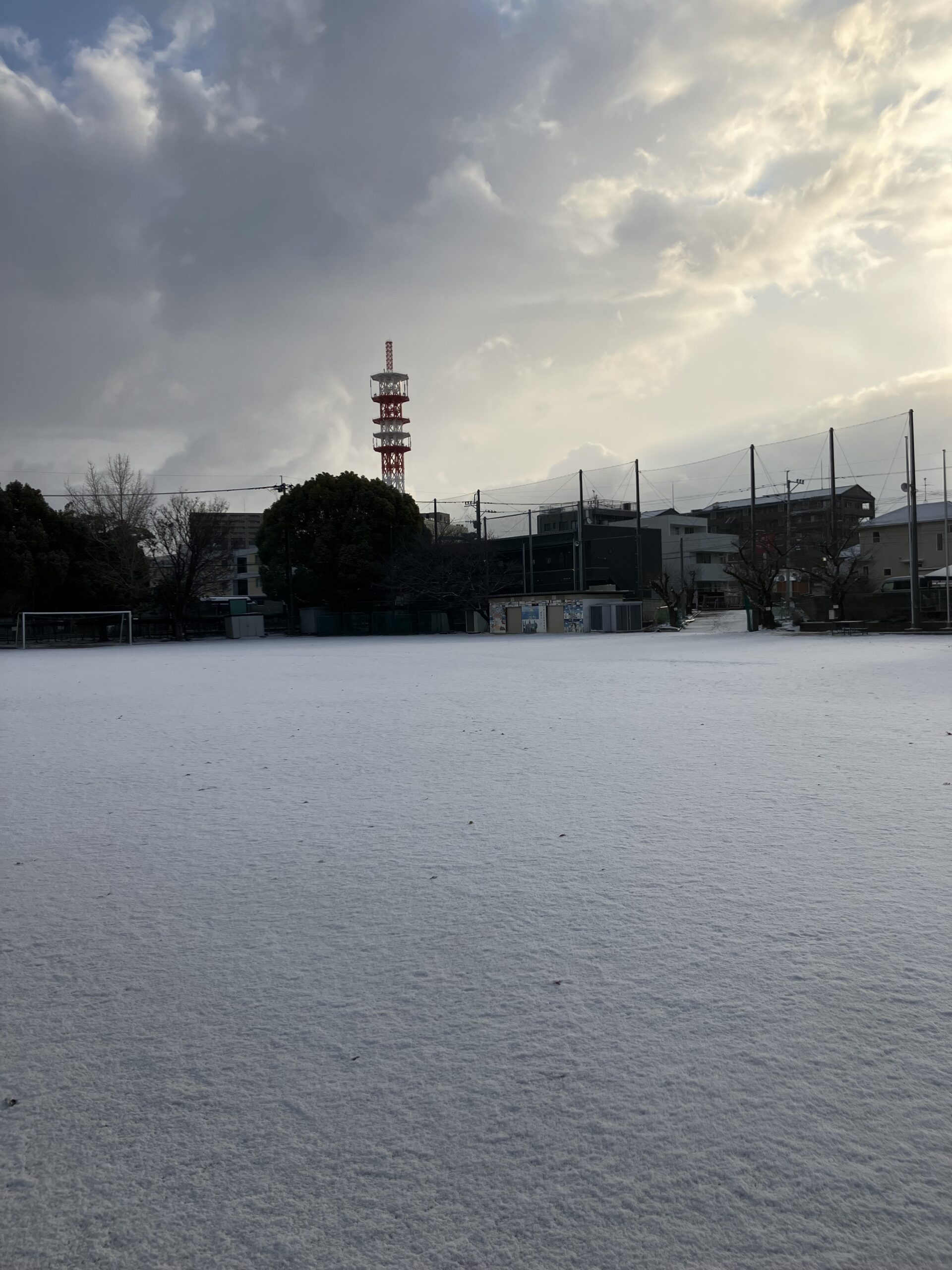 第51回総選挙投票日当日の朝、小学校の駐車場スタッフさんが観ていた、白いグランド。