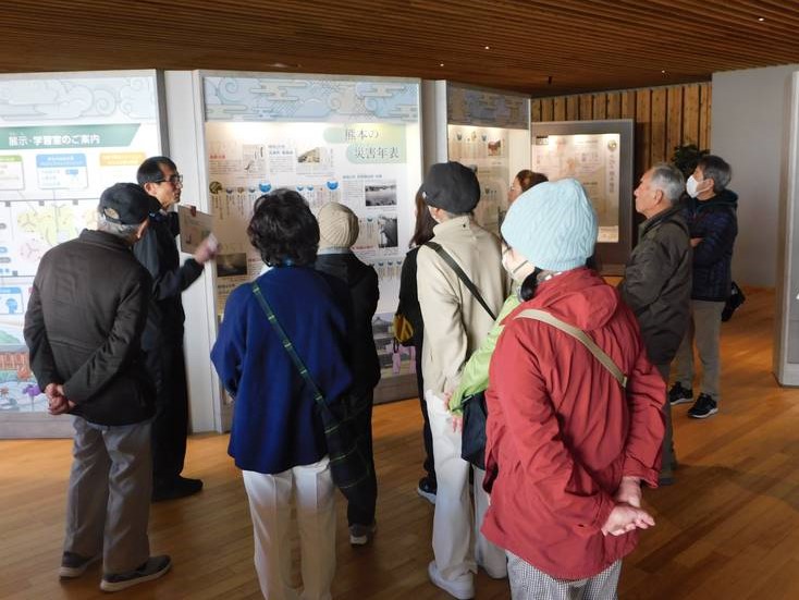 1階の展示・学習室では、熊本地震や風水害など県内で発生した大規模災害の経験から得た災害対応のノウハウなどを学ぶことができます。