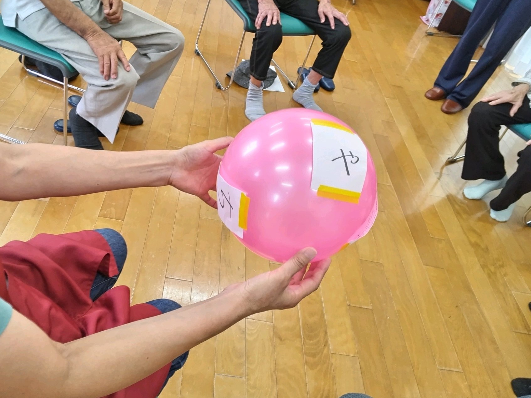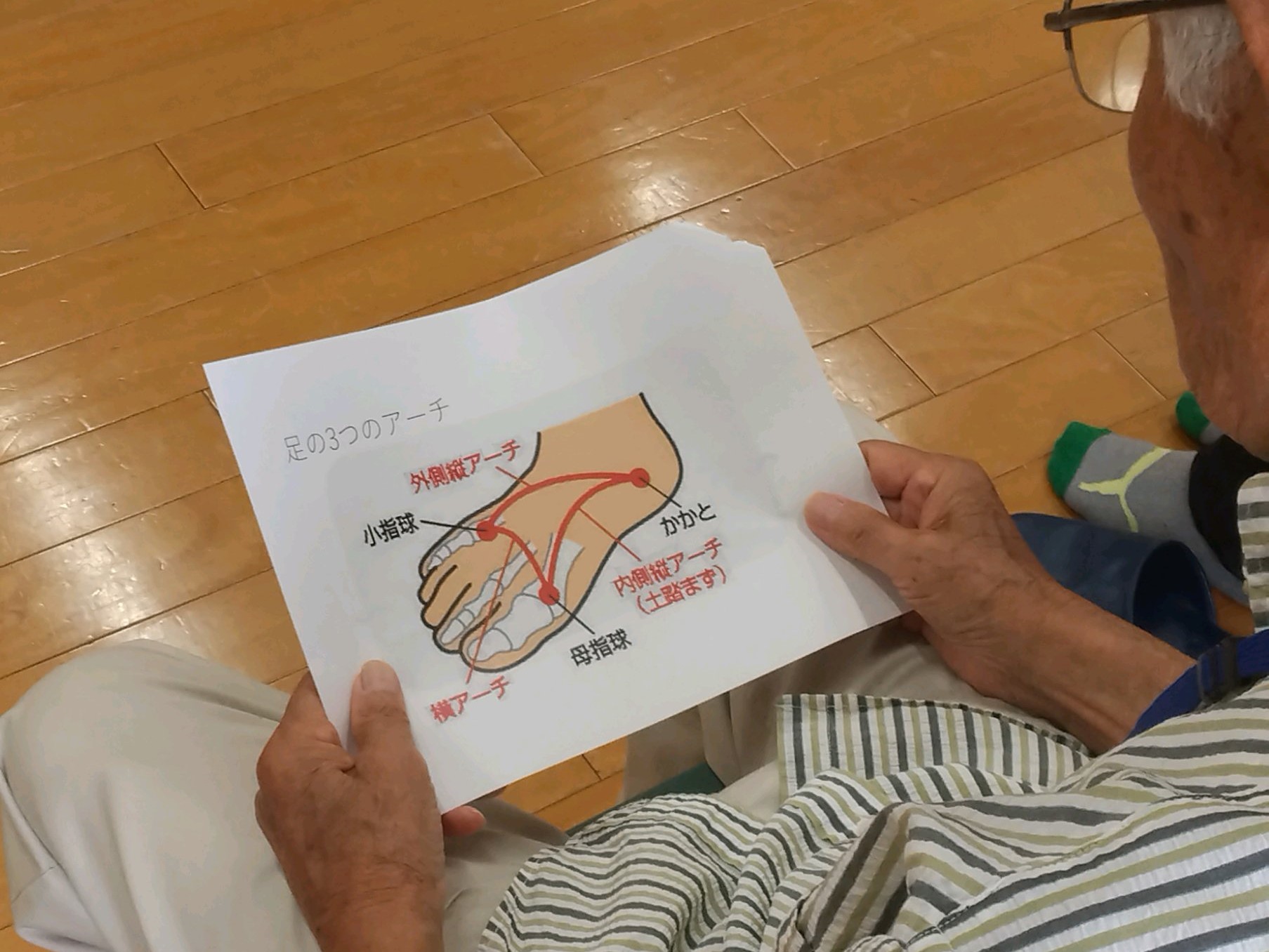ボールに書かれた文字を足でパスしながら読み取るゲームや、「足アーチ」の大切さについて学びました