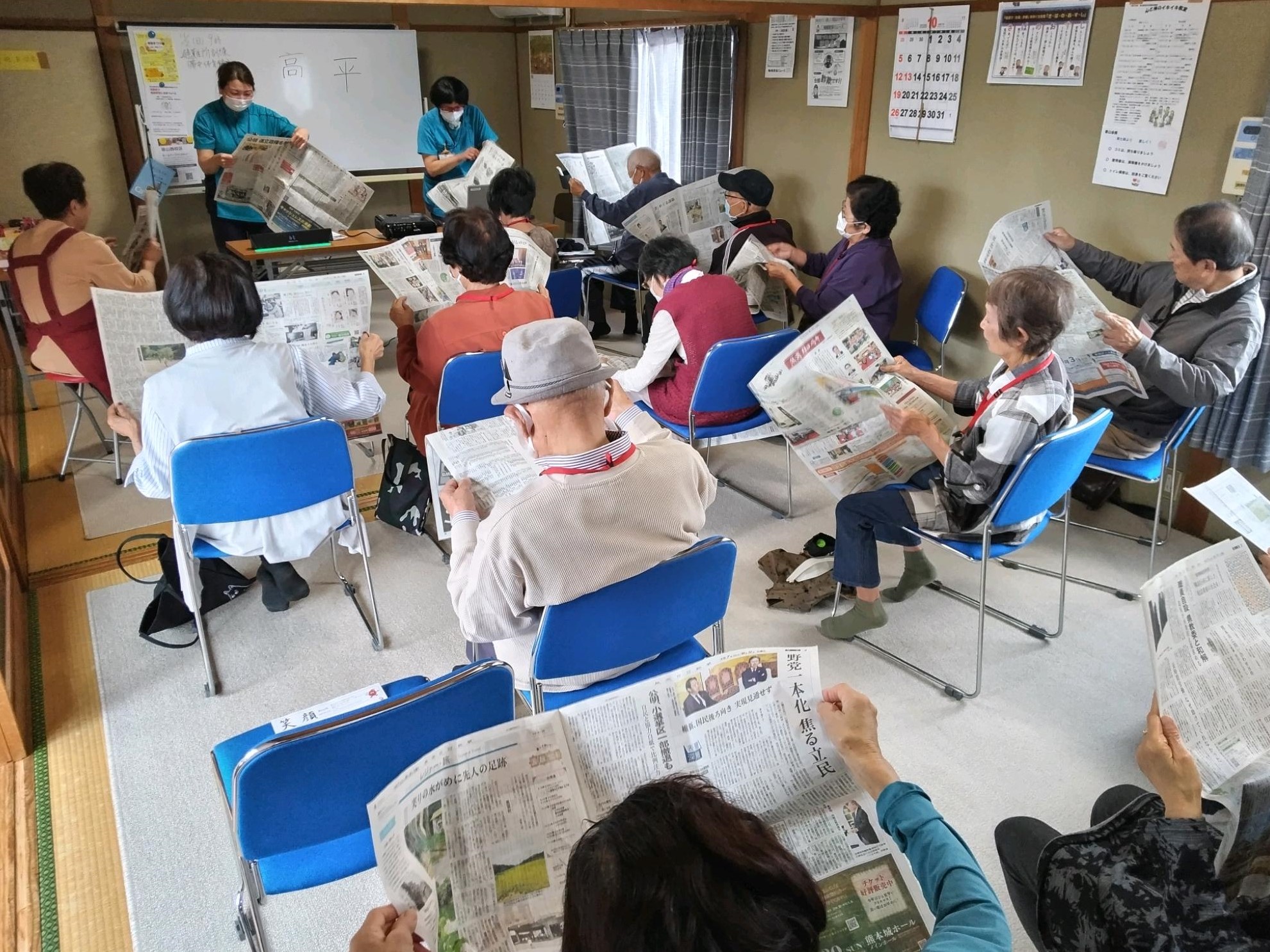 7月の教室で好評だった新聞紙面から指示された文字を探し出す脳トレや、