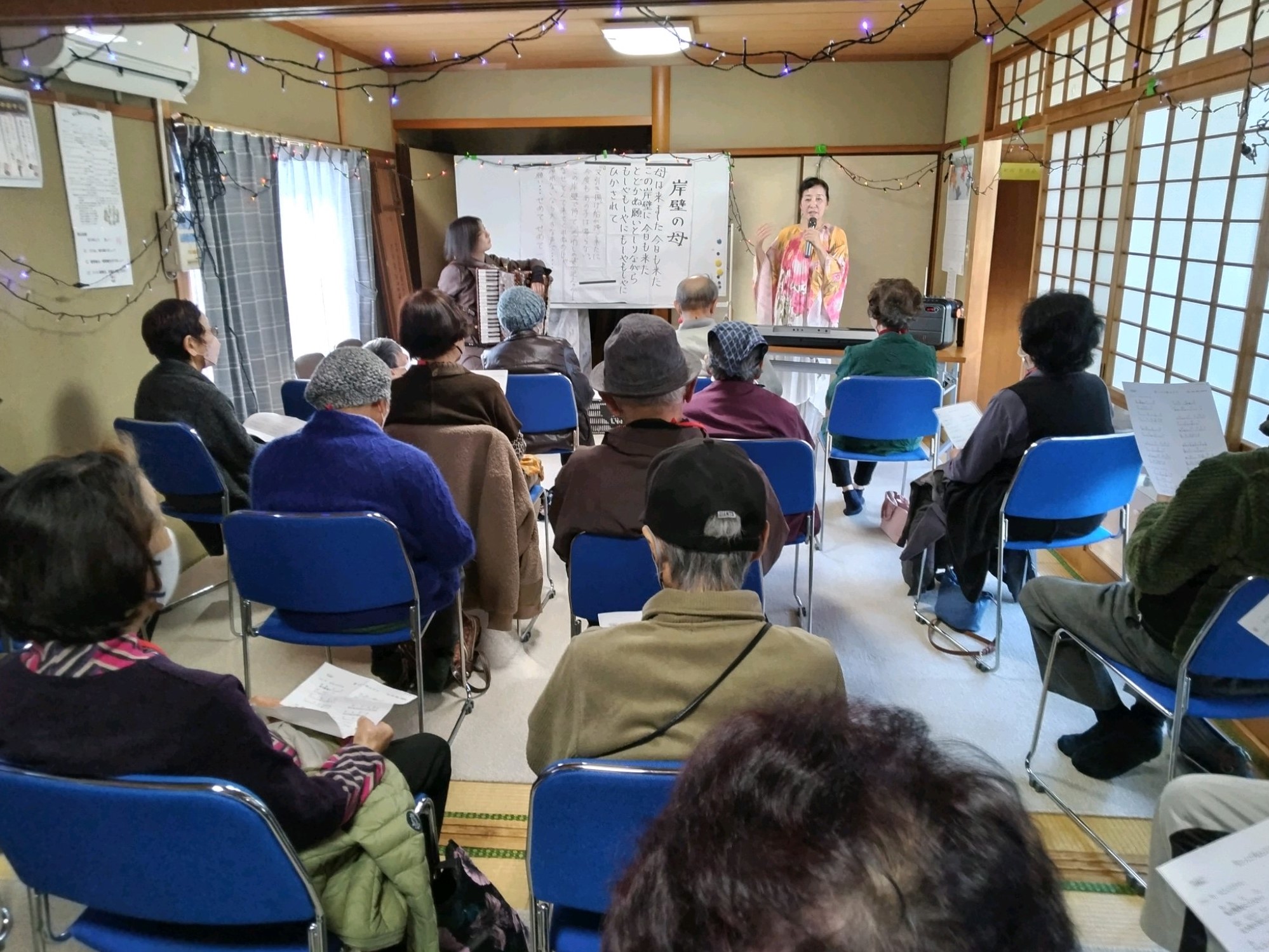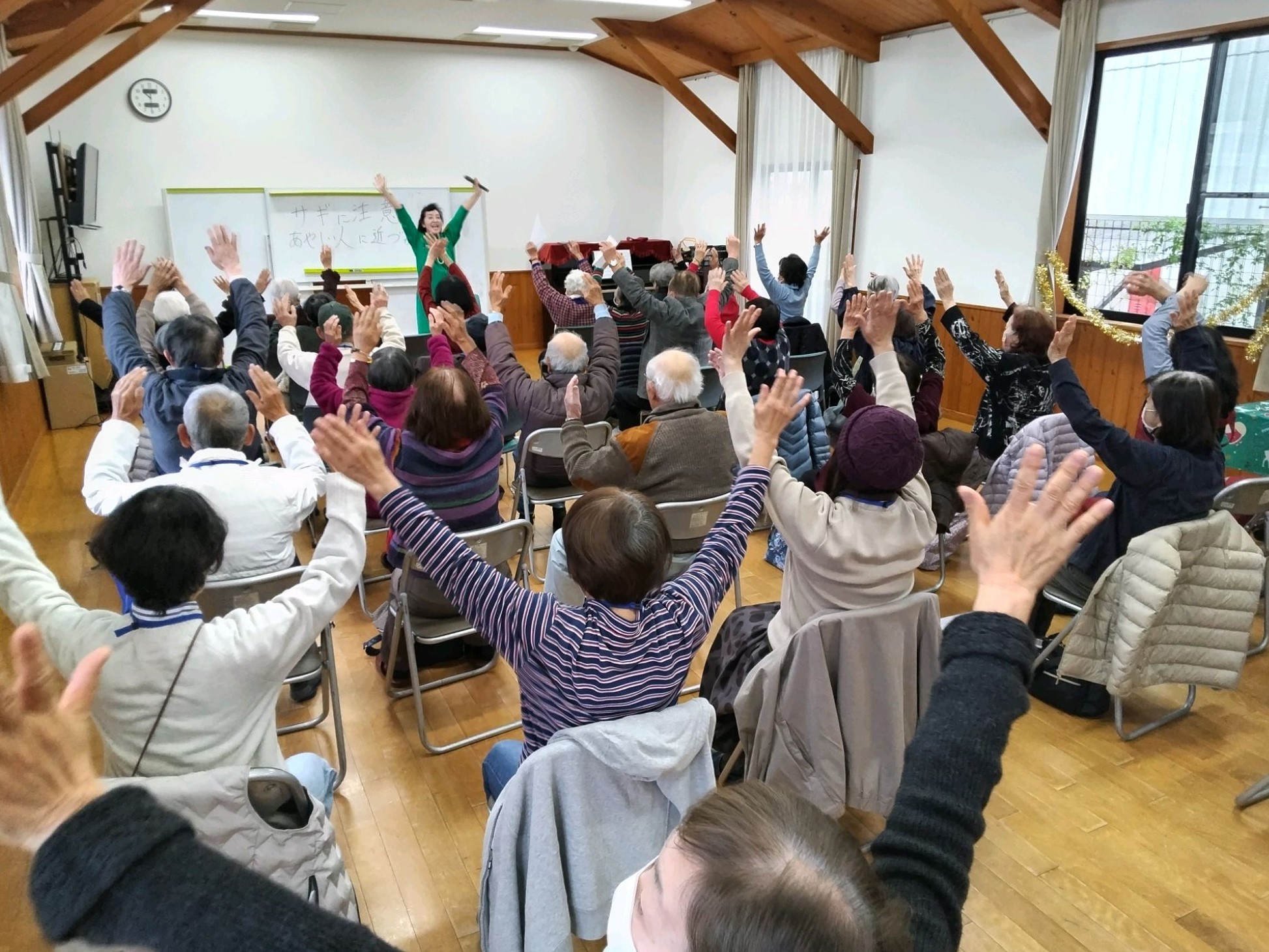 12月のテーマは「クリスマス会」 音楽療法士・小林真寿子先生によるトークや歌唱指導、体操など楽しいひと時を過ごしました。