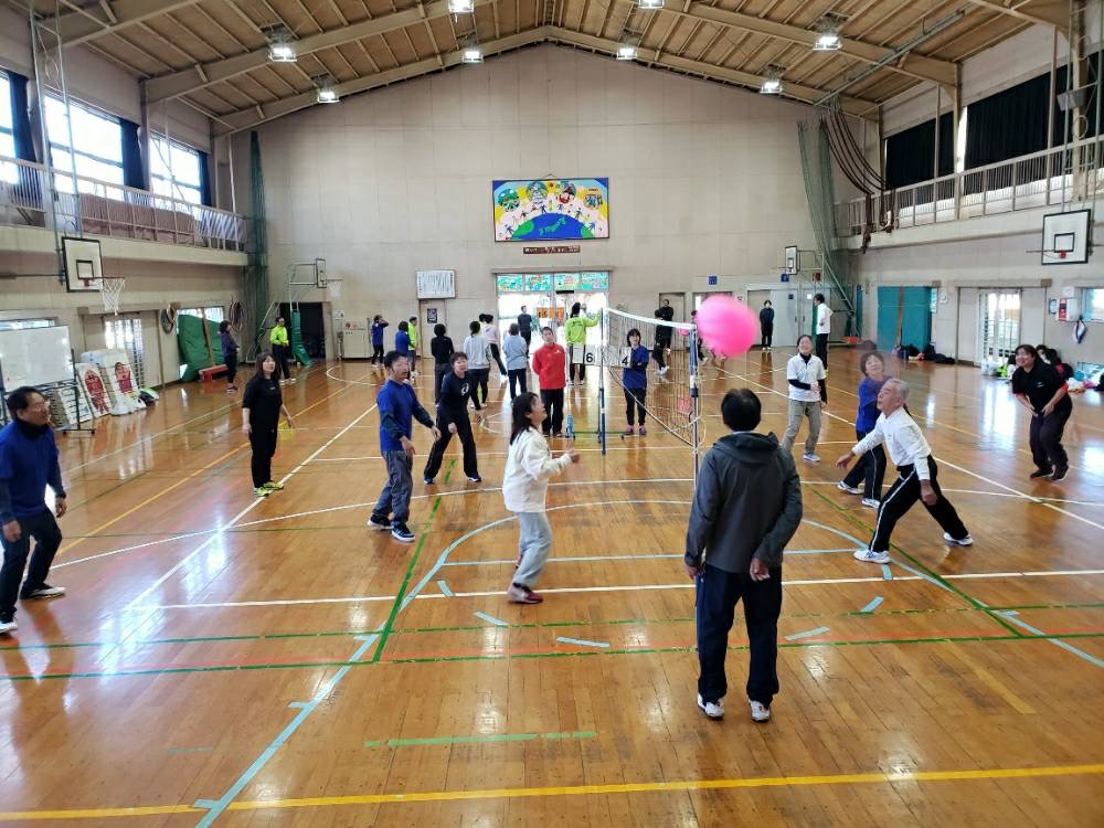 ​フラバールバレーは変形したボールを使用するレクリエーションバレーです。協会理事による講習会や体験会を経て、今回が初めての町内対抗大会となりました。