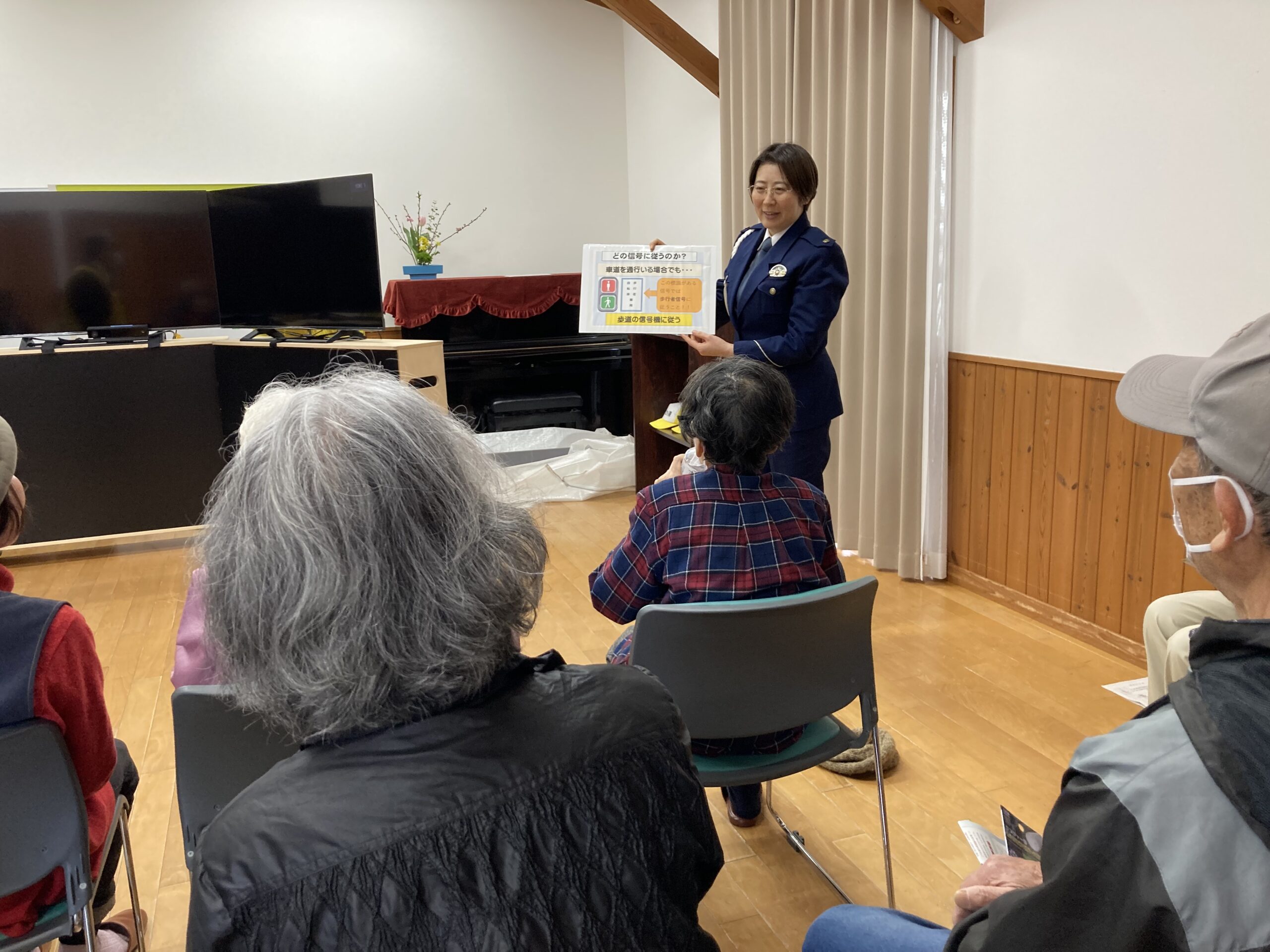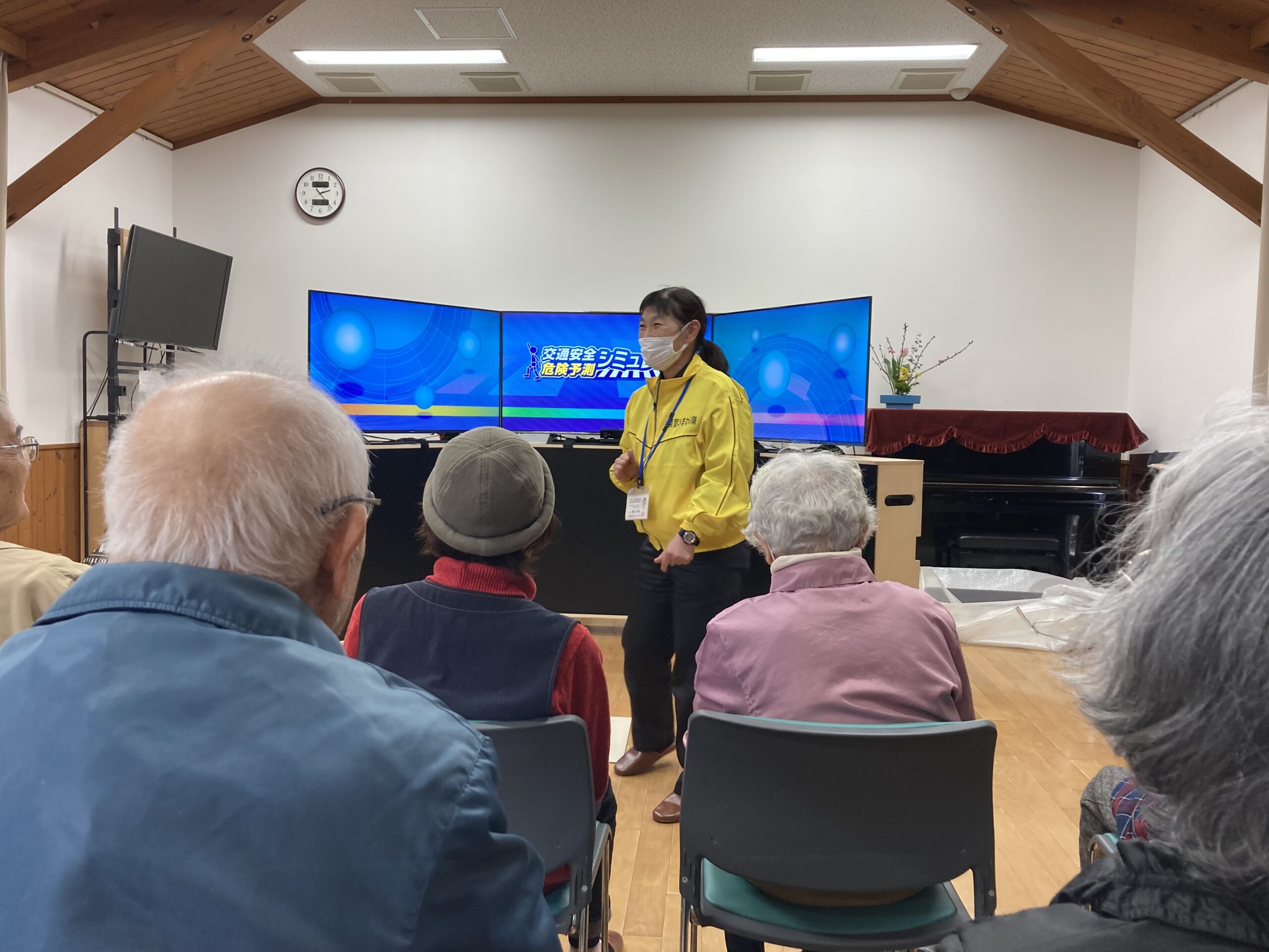 横断歩道の歩行をシュミレーションで体験をして、安全グッズを紹介して頂き大変勉強になりました。