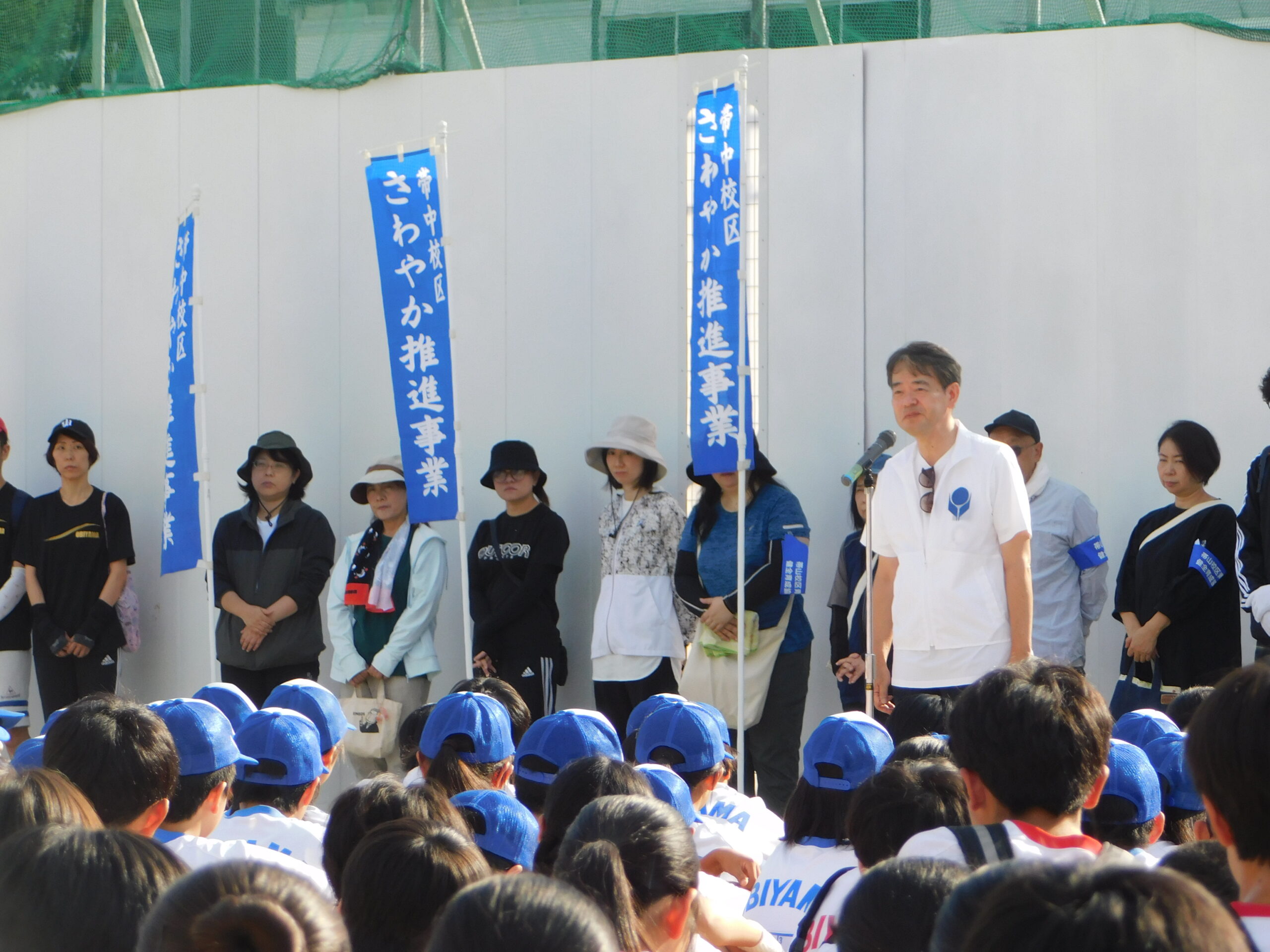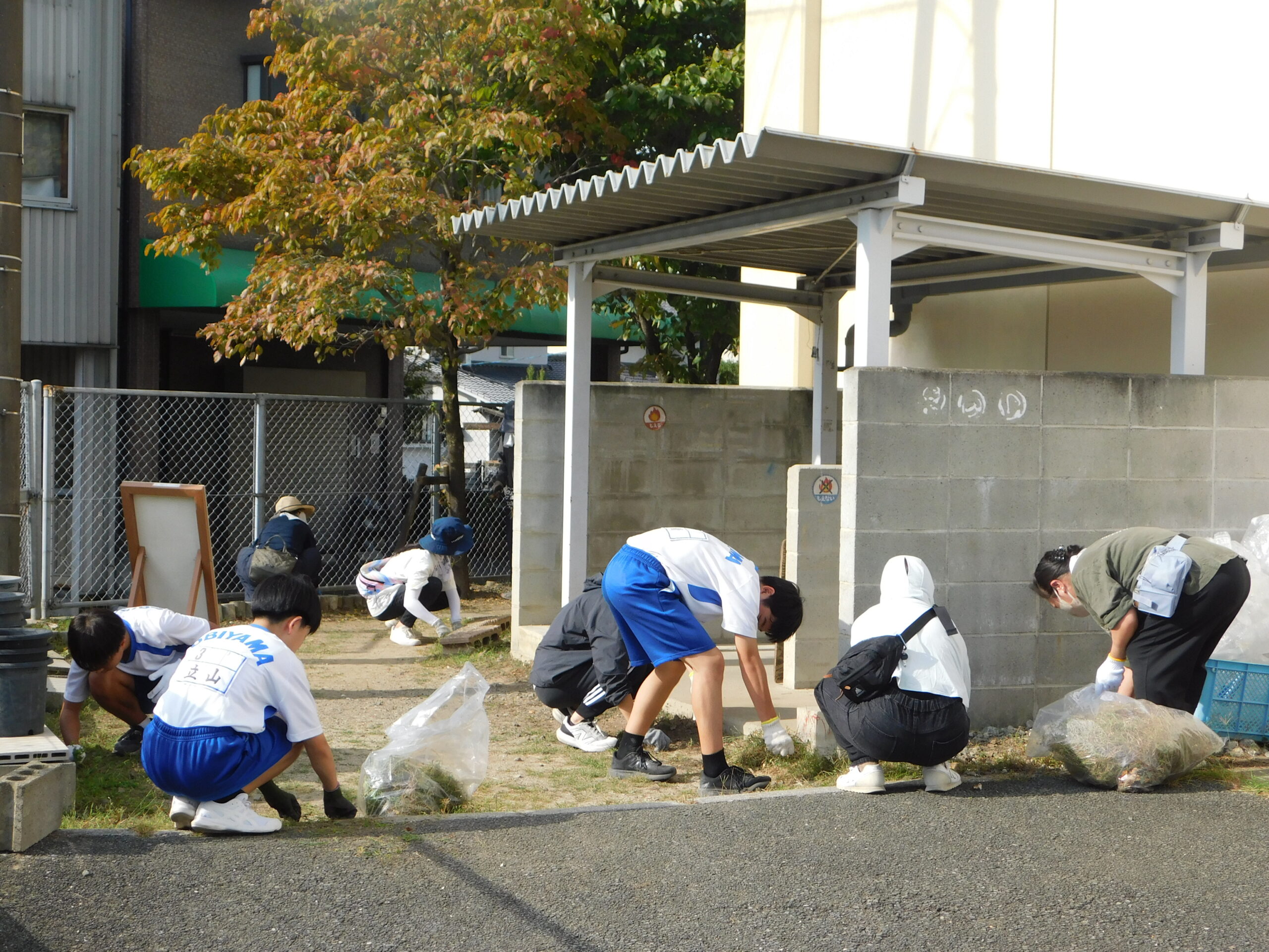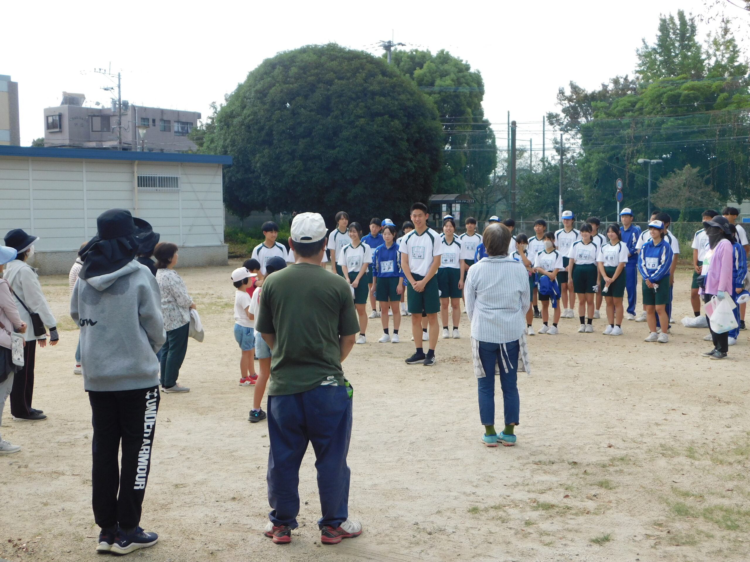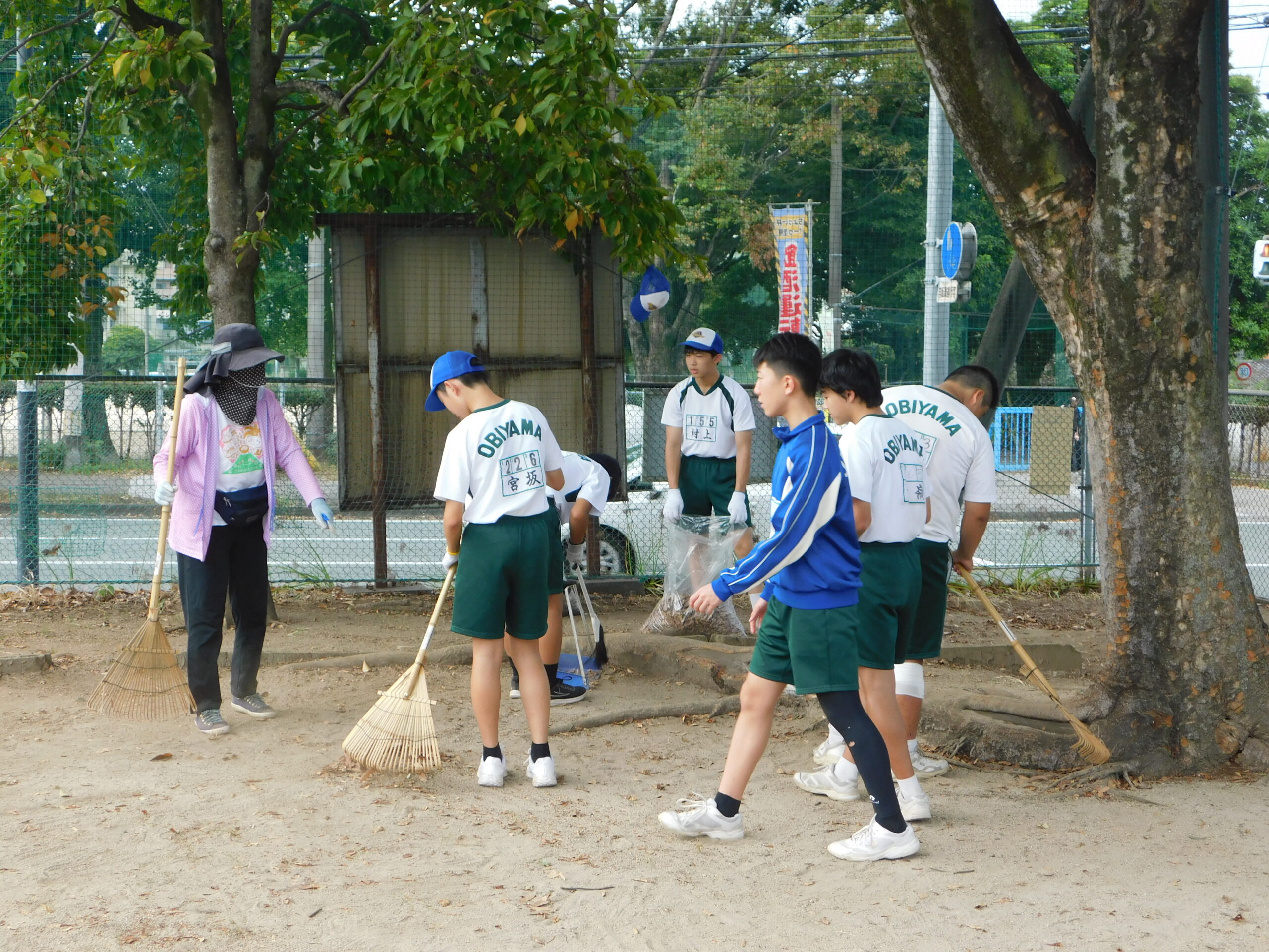 1年生は中学校校庭の、3年生は校区公園(※)等の清掃を地域の方々と協力して行いました。