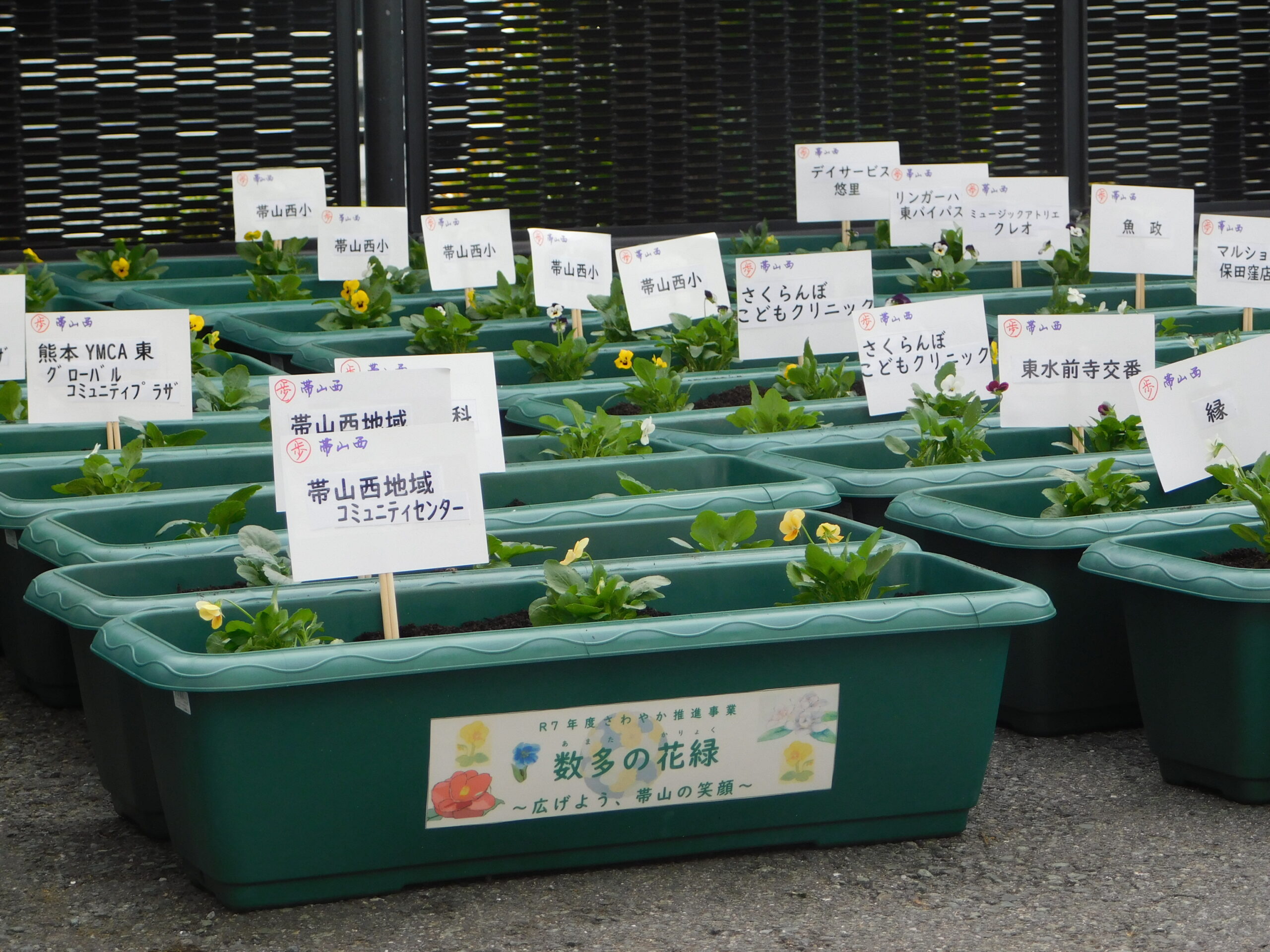 中学生が決めた今年のテーマは、『数多(あまた)の花緑(かりょく)』~広げよう 帯山の笑顔~。
