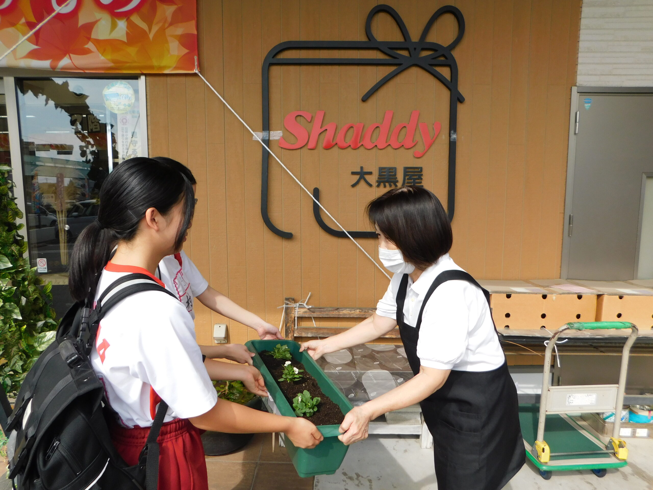 2年生は、校区内でゆかりのある事業所や小学校、施設等に鉢植えの花を宅配しました。